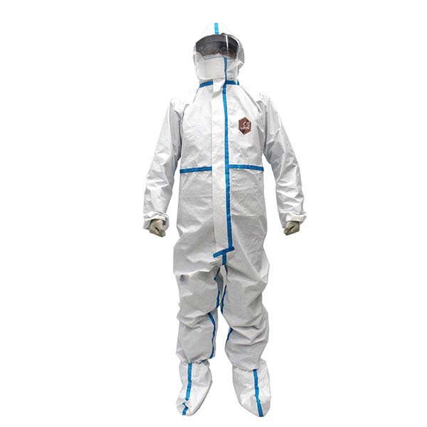 防護(hù)服為連體帶帽款式設(shè)計(jì),彈性頭罩、腰間、手腕、腳踝設(shè)計(jì),便于安全穿著和自由行動(dòng)。