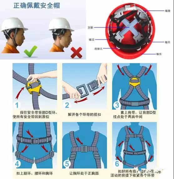 高空作業人員應經過體檢合格,取得登高架設作業證,方可上崗,施工單位應為作業人員提供合格的安全帽、安全帶等必備的個人安全防護用品,作業人員應按規定正確佩戴和使用。