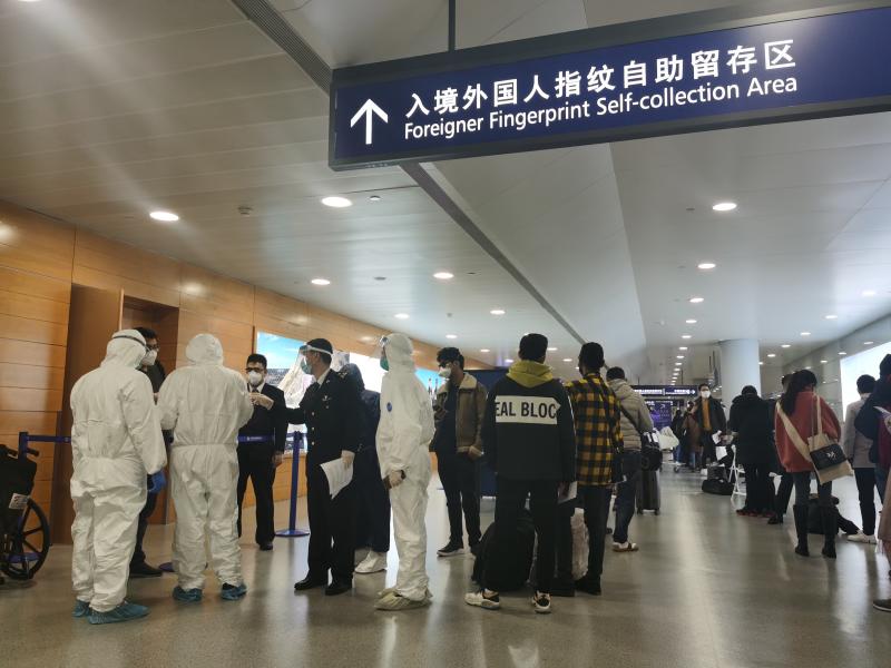 洋山海關查驗三科副科長李振卿3月5日晚上接到征集令,3月6日就已上崗浦東機場國門衛生檢疫崗。任務應接不暇,他隨時切換,時而是流行病學調查(即“流調”),時而是去旅客等候處現場維持秩序、進行人員分流等。3月6日,已有從上海海關各隸屬海關調集而來的50余位具醫學背景的關員,火線支援浦東機場防輸入一線,且其中相當一部分如李振卿一樣是“二次支援”——他在2月1日至2月23日,增援浦東機場,專職流調和醫學排查,和他一樣首批支援到崗的關員有170余人。然而2月24日,他回洋山海關上班僅一周半,又迅速折返。