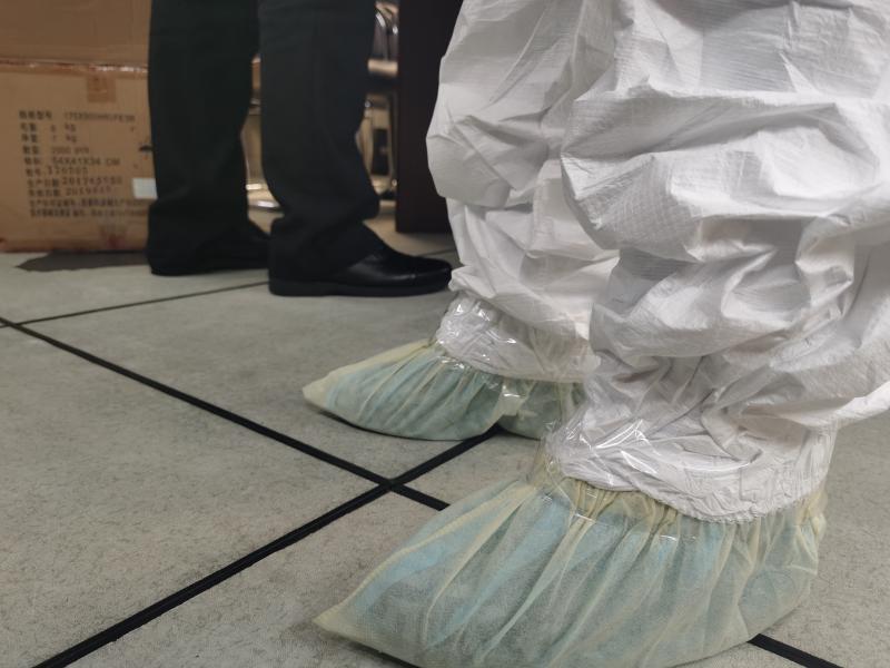 一線的衛生檢疫人員,已經忙到根本沒時間坐下。他們的輪班是這樣的——從天9時到21時,回家睡一覺,第二天又來上班,從21時做到第三天的9時。他們從節前一直戰斗到現在,其中,有人取消了婚期,有人無法陪夫人分娩,也有人將兩個孩子單獨拋在家中。隔三差五,就有人忙到昏倒——他們穿著規定時效為4小時的防護服,但往往10小時都脫不下來,期間滴水不沾、粒米不進,也不上廁所。記者在現場看到,有檢疫關員們正在互相幫助改善防護服——沒有更高級別的膠條防護服,他們只能用玻璃膠布幫助同事將手腕處手套與防護服的連接處盡可能地封住。他們都很珍惜防護物資,專門有個物資小組,每天掌握庫存、統計現場使用量,再精準地向上級申請。