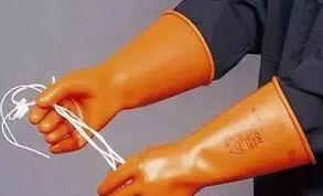 使用絕緣手套時(shí)應(yīng)將上衣袖口套入手套筒口內(nèi),以防發(fā)生意外。