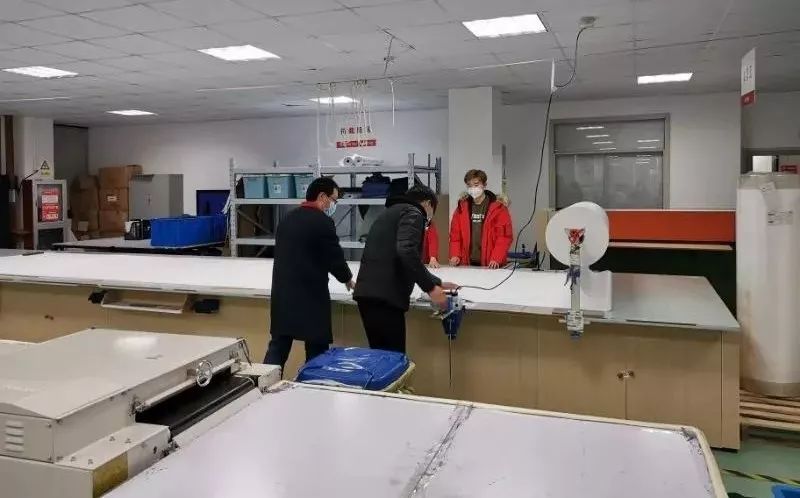 最終走訪了3家企業(yè),才將15臺拷邊機湊齊。當晚,周浦鎮(zhèn)產(chǎn)業(yè)園連夜把機器運回誠格工廠。深夜3點,廠房消毒完畢,設(shè)備組裝調(diào)試維修完畢,打樣確認準備生產(chǎn)完畢。
