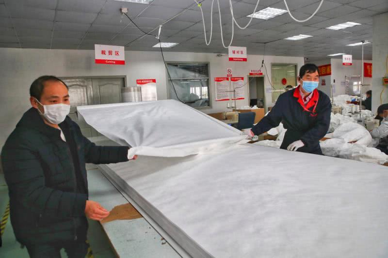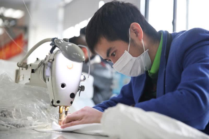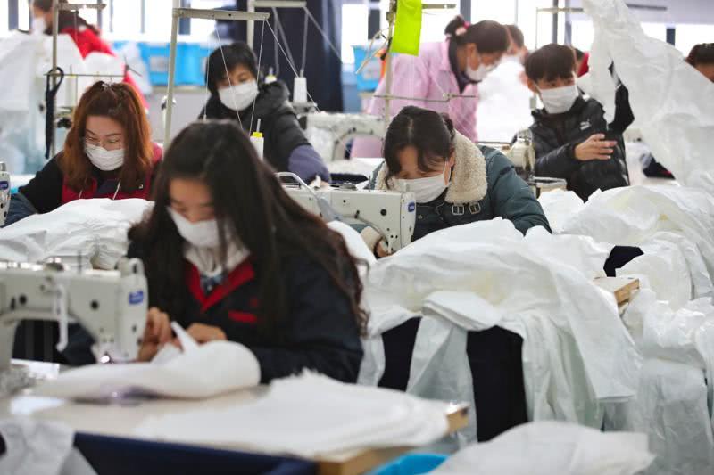 上海誠(chéng)格安全防護(hù)用品有限公司防護(hù)服生產(chǎn)車(chē)間經(jīng)過(guò)了幾天的設(shè)備調(diào)整,50多個(gè)車(chē)位,70多名工人正在加班加點(diǎn)趕制醫(yī)用防護(hù)服。